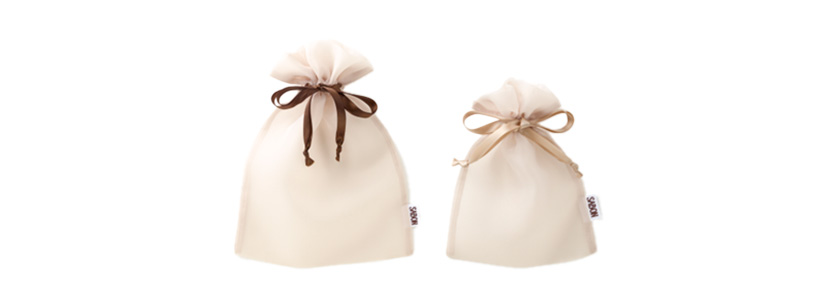 上品な透け感が美しいオーガンジー素材のラッピングバッグを2サイズご用意致しました。