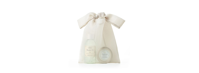 やわらかな光をまとった軽やかな素材感が、SABONのアイテムをより一層華やかに引き立てます。