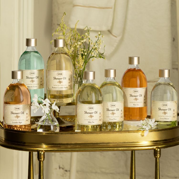 サボンのボディソープは植物性オイル配合。汚れを落とすだけではなく、洗い上がりはしっとりとした肌に。