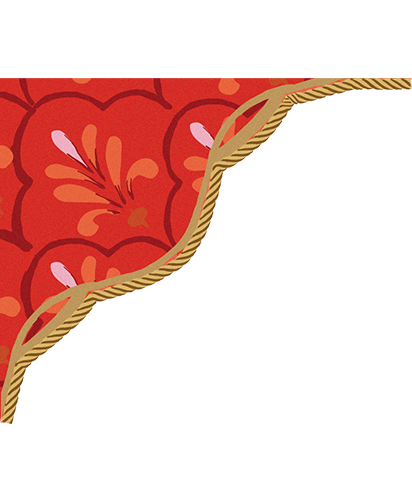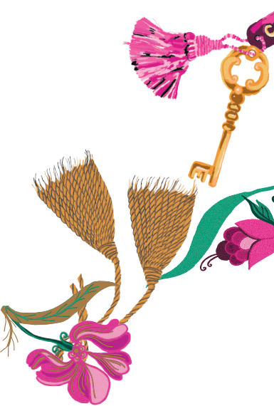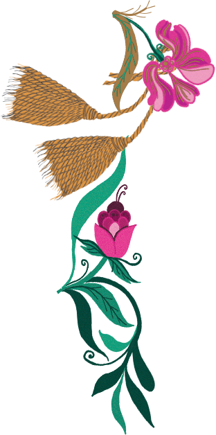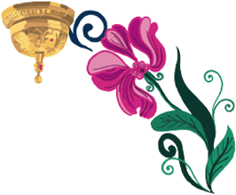 王宮の天窓から差し込む光と庭園の花々を束ねた